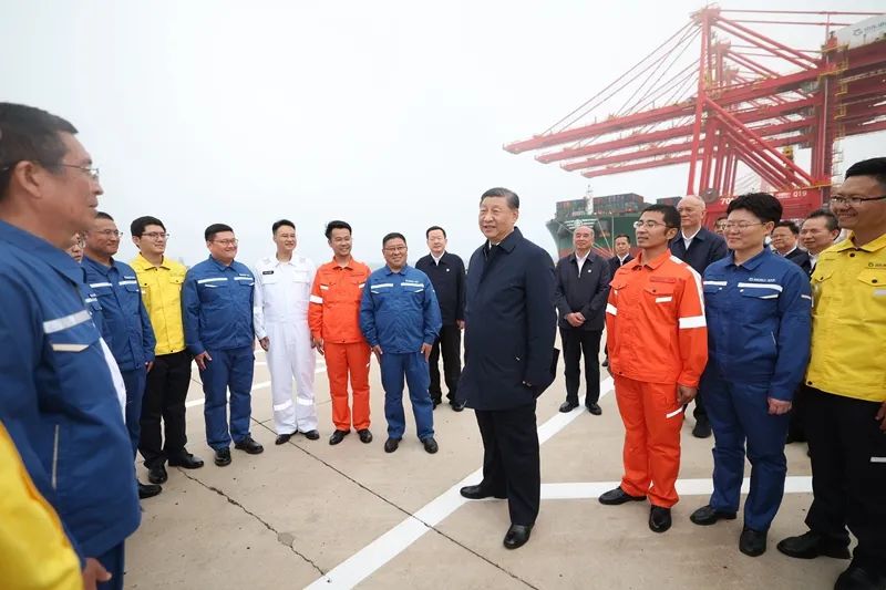 22日下午,習(xí)近平首先來(lái)到日照港考察。日照港是重要的能源和大宗原材料中轉(zhuǎn)基地,近年來(lái)推進(jìn)智慧化、綠色化建設(shè),建成順岸開(kāi)放式全自動(dòng)化集裝箱碼頭。習(xí)近平聽(tīng)取山東省港口發(fā)展建設(shè)和日照港規(guī)劃布局等情況介紹,并察看全自動(dòng)化集裝箱碼頭作業(yè)場(chǎng)景。他說(shuō),日照港是改革開(kāi)放后新建的港口,近年來(lái)推進(jìn)科技創(chuàng)新,將傳統(tǒng)港口改造升級(jí)為現(xiàn)代化港口,不僅貨物吞吐量躋身全國(guó)前列,還積累了通過(guò)傳統(tǒng)產(chǎn)業(yè)改造升級(jí)發(fā)展新質(zhì)生產(chǎn)力的經(jīng)驗(yàn),值得肯定。習(xí)近平親切慰問(wèn)港口科技工作者、運(yùn)營(yíng)人員、航運(yùn)人員,希望大家再接再厲、繼續(xù)奮斗,推動(dòng)日照港管理運(yùn)營(yíng)更上一層樓。