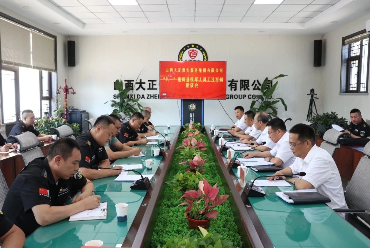 2024年8月1日,在第97個(gè)“八一”建軍節(jié),為深入貫徹落實(shí)習(xí)近平總書(shū)記對(duì)退役軍人工作作出的重要指示精神,增強(qiáng)退役軍人榮譽(yù)感,牢記報(bào)國(guó)初心,永葆軍人本色。山西大正保安服務(wù)集團(tuán)有限公司在公司中會(huì)議室隆重舉行了“八一”慰問(wèn)退役軍人員工及軍屬座談會(huì)。集團(tuán)公司領(lǐng)導(dǎo)及機(jī)關(guān)退役軍人員工、各子(分)公司、城區(qū)中隊(duì)退役軍人員工代表、軍屬代表30余人參會(huì)。此次活動(dòng)旨在向?yàn)楣景l(fā)展做出重要貢獻(xiàn)的退役軍人員工及默默支持他們的軍屬表達(dá)崇高敬意和深切關(guān)懷,進(jìn)一步弘揚(yáng)擁軍優(yōu)屬、擁政愛(ài)民的優(yōu)良傳統(tǒng)。