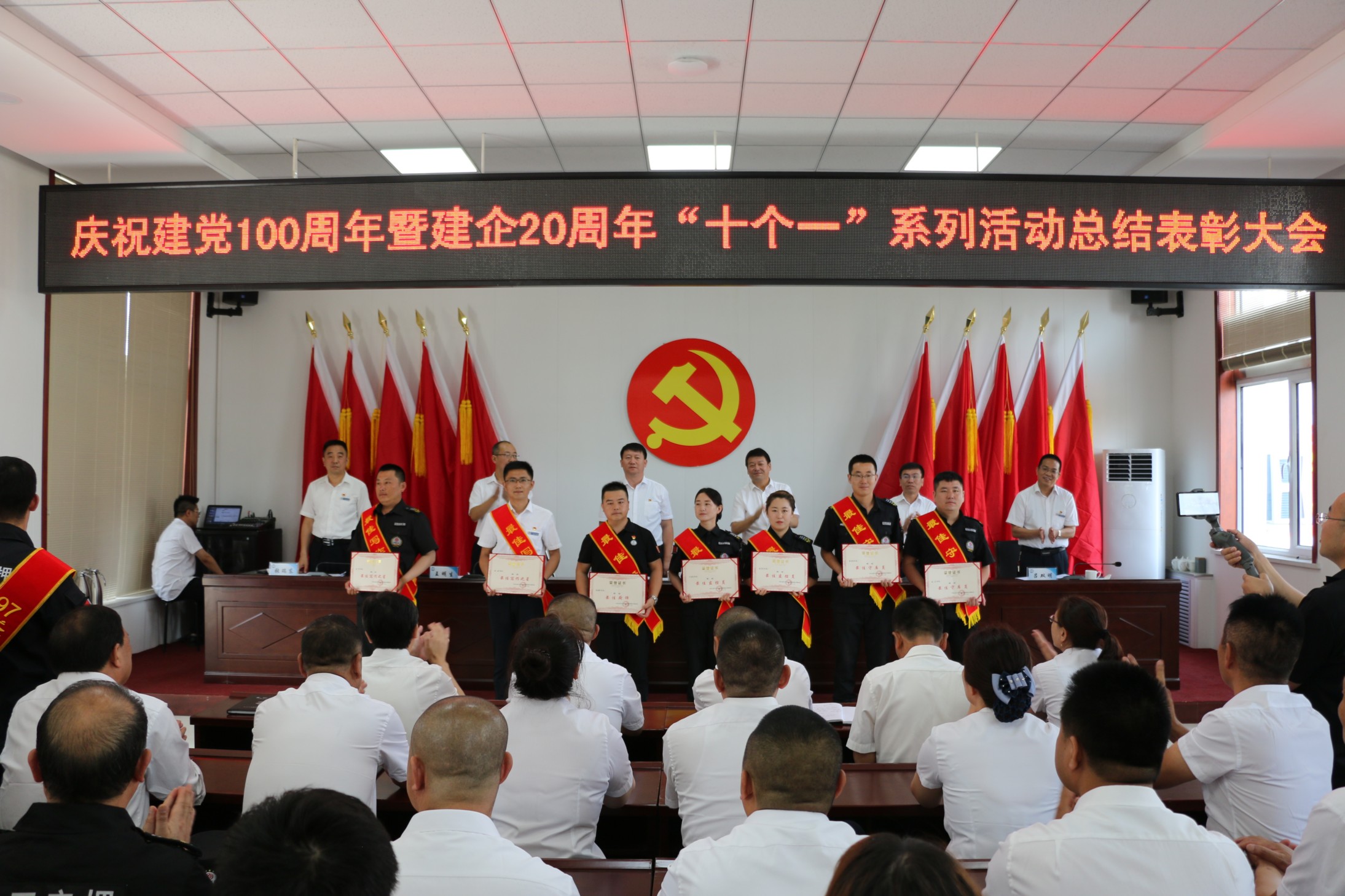 集團(tuán)公司黨委委員邢春生同志宣讀了《關(guān)于表彰集團(tuán)公司慶祝建黨100周年暨建企20周年“十個一”系列活動獲獎集體、獲獎個人的決定》;黨委委員、副總經(jīng)理王明生同志向大會通報了今年上半年受到上級表彰的先進(jìn)集體和個人。