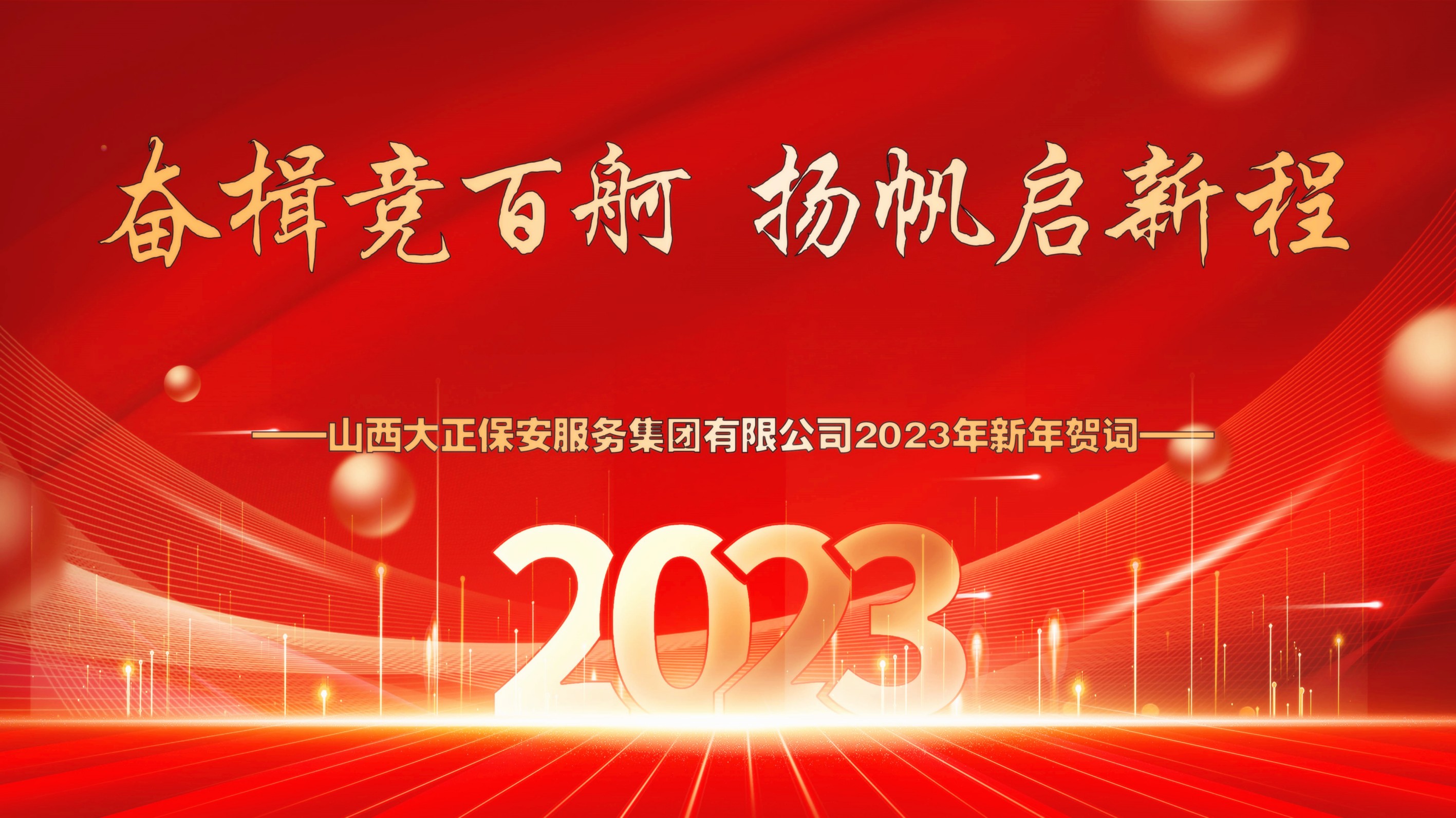 歲序更替,華章又新。2023的新年即將來臨,在這辭舊迎新、充滿希望的美好時(shí)刻,山西大正保安服務(wù)集團(tuán)有限公司黨委、董事會(huì)及經(jīng)理班子,向集團(tuán)公司全體黨員、干部、職工及背后默默支持大家的家屬朋友們,致以新年的祝福和節(jié)日的問候!向始終關(guān)心山西大正保安集團(tuán)發(fā)展建設(shè)領(lǐng)導(dǎo)和同仁;向長(zhǎng)期以來給予山西大正保安集團(tuán)支持、信任的客戶和合作伙伴致以最衷心的感謝和最誠(chéng)摯的新年祝福!