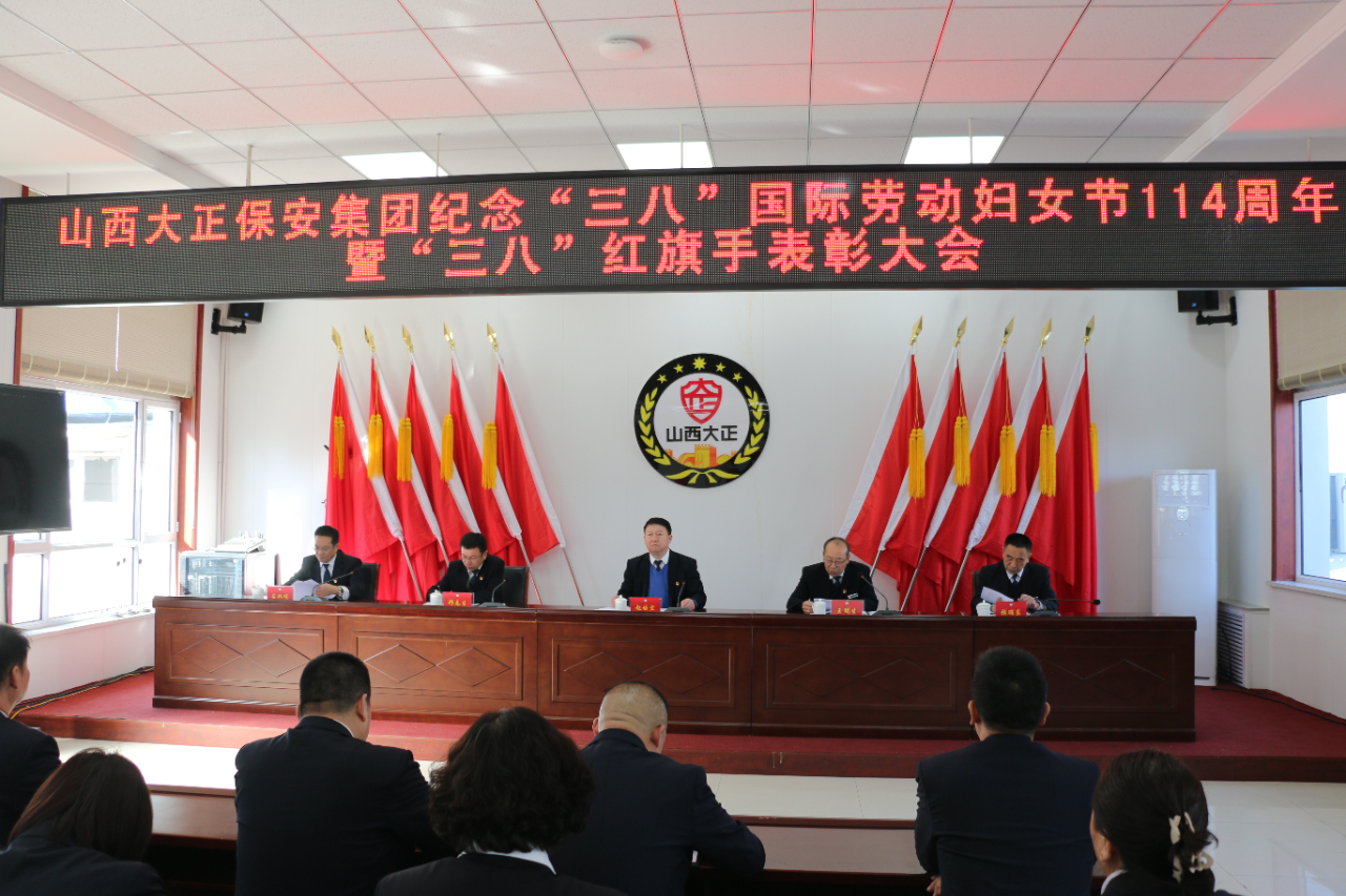 2024年3月8日上午,山西大正保安服務(wù)集團(tuán)有限公司召開紀(jì)念“三八”國(guó)際勞動(dòng)?jì)D女節(jié)114周年暨“三八”紅旗手表彰大會(huì),集團(tuán)公司領(lǐng)導(dǎo)、“三八”紅旗手代表和機(jī)關(guān)、城區(qū)部分女員工共計(jì)80余人參會(huì)。會(huì)議由集團(tuán)公司黨委委員、副總經(jīng)理王明生主持。