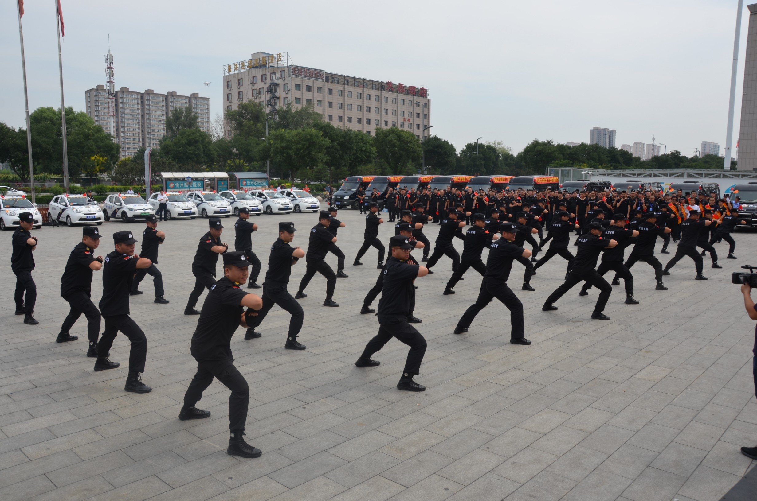 儀式在現(xiàn)場全體人員齊聲高唱的《歌唱祖國》歌聲中達到高潮,大家揮舞著手中的國旗,表達了對祖國的良好祝愿。山西大正保安服務(wù)有限公司保安隊員進行了擒敵拳操展示,剛勁有力、整齊劃一的動作,體現(xiàn)出大正保安隊員苦練基本功的豐碩成果,展現(xiàn)了大正保安隊員良好的精神風(fēng)貌和戰(zhàn)無不勝、攻無不克的專業(yè)素養(yǎng)。儀式結(jié)束后,由各保安企業(yè)組織的30余輛保安業(yè)務(wù)車在忻州城區(qū)進行巡回宣傳。