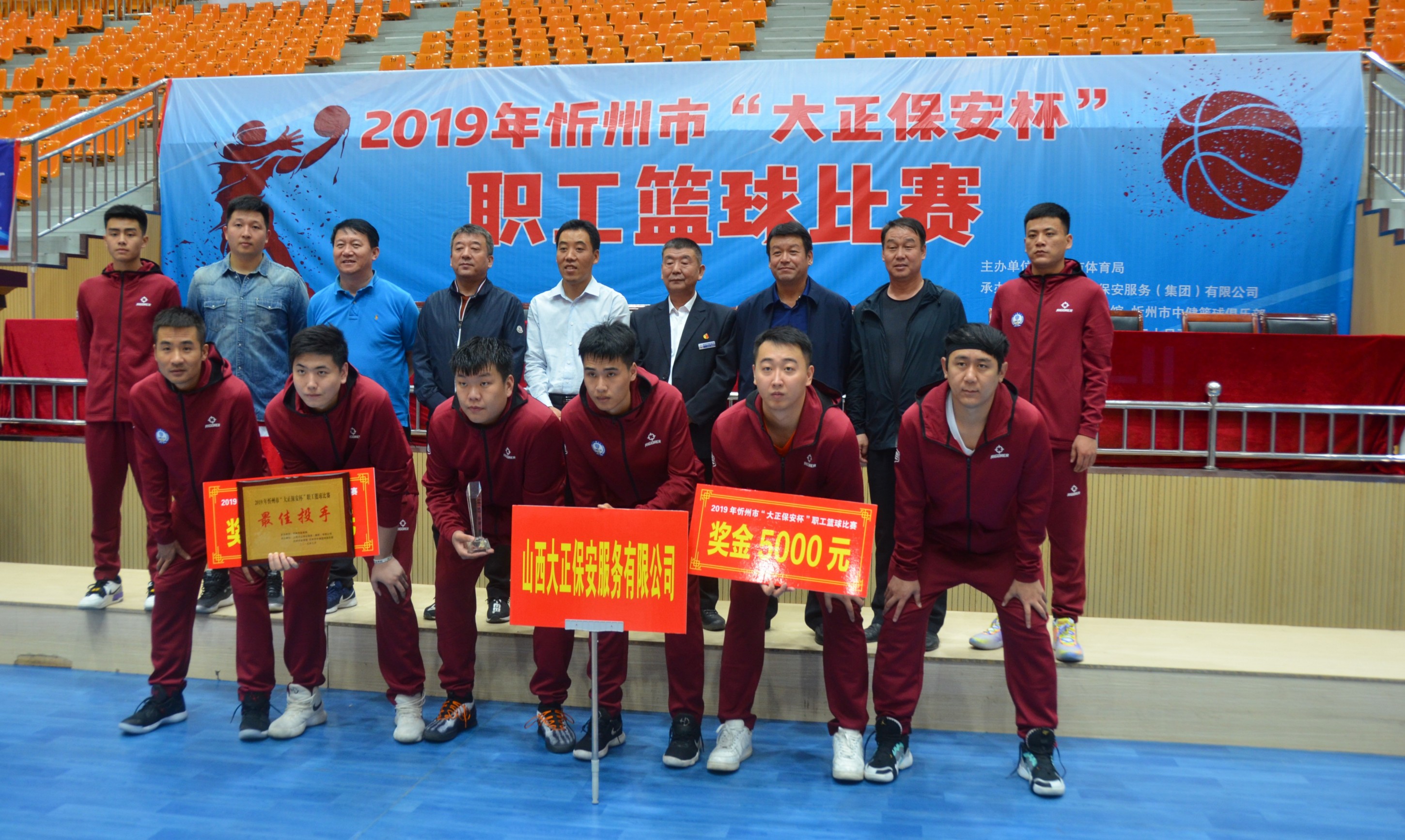 9月26日晚,由忻州市體育局主辦,山西大正保安服務(集團)有限公司等承辦的2019年忻州市“大正保安杯”職工籃球比賽圓滿落幕。山西大正保安職工籃球隊惜敗于忻州市燃氣有限公司獲得第二名,我公司籃球隊李濤獲得本次賽事的最佳投手獎。張躍生、陳志平、趙培宏、王明生、邢春生等公司領導與300余名職工現(xiàn)場觀賽,為公司籃球健兒鼓勵助威。
