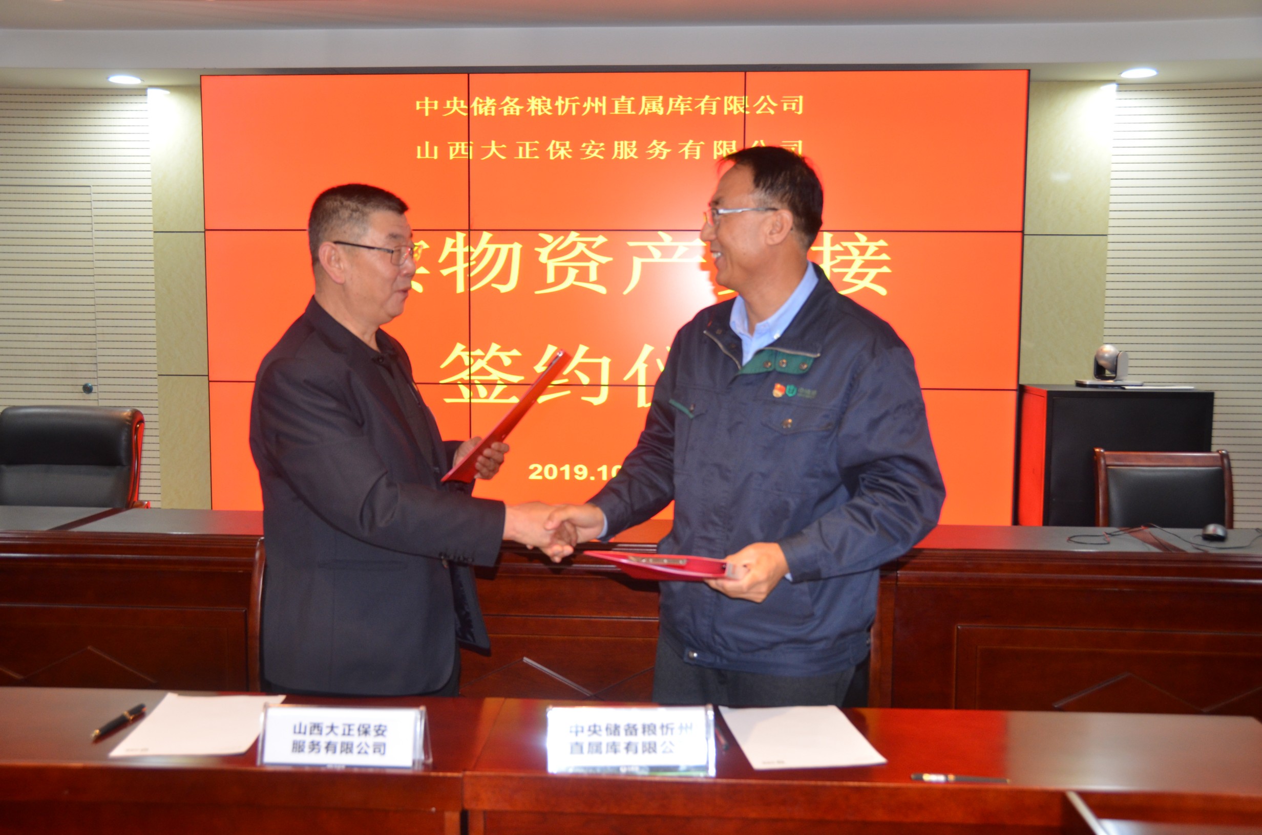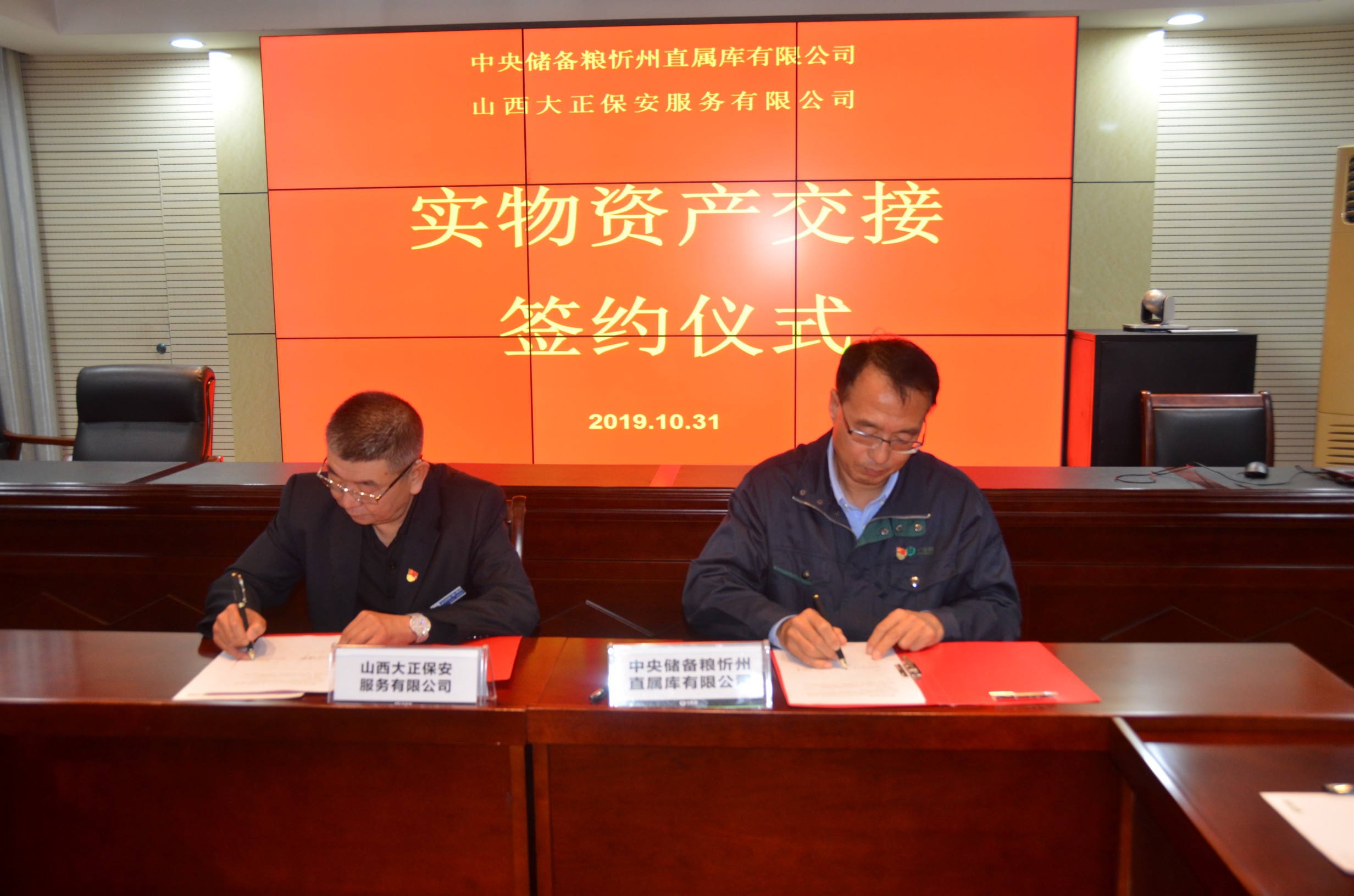 10月31日,山西大正保安服務(wù)(集團)有限公司與中儲糧忻州直屬庫有限公司在中儲糧忻州直屬庫有限公司會議室簽署資產(chǎn)交接協(xié)議,正式交接中儲糧忻州直屬庫有限公司轉(zhuǎn)讓的原紅鑫淀粉廠項目土地、建筑等資產(chǎn)。