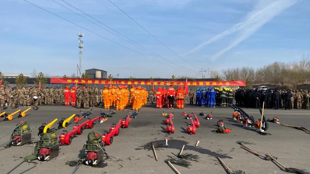 “首長同志,忻州市忻府區(qū)2021年春季森林草原防滅火演練前準備完畢,是否開始,請指示!”隨著忻府區(qū)人武部部長李強向在場指揮員的一聲報告,演練正式開始。此次演練采取“實名制指揮、實案化準備、無預案演練”的方式組織實施,共演練四個階段,分別是:指揮所開設(shè)、先期處置、區(qū)級響應(yīng)和綜合保障。忻州市正大物業(yè)管理有限公司民兵應(yīng)急連隊伍負責森林防滅火工具的操作實施,演練場上,由我公司隊員組成的忻府區(qū)人民武裝部方隊的隊員們操持著割灌機、背負式吹風機、高壓細水霧滅火機、鐵掃把等裝備精神抖擻、整齊劃一地走過主席臺,展現(xiàn)了過硬的軍事作風,展示了強大的裝備力量。