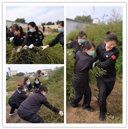 后勤部門的同志早已準(zhǔn)備好了鐮刀、鋤頭、鐵鍬,一大早,各部門組織員工按照劃分好的區(qū)域開始除草行動。剛進(jìn)場地看見有的野草長的非常茂盛,高過女同志,一時還真找不著下手之處,很快大家便找到了對付辦法,刀砍鍬鏟手拔,還有的幾個人合力拔大的雜草,男同志揮汗如雨,女同志也不甘落后,鉚足了勁頭,還有基層趕來助戰(zhàn)的保安員幫助“后進(jìn)隊伍”,勞動現(xiàn)場一片祥和景象。還有部分區(qū)域?qū)?ldquo;無主”狀態(tài),大家積極主動配合,合力圍剿,經(jīng)過全體職工的辛勤勞動,將近中午,大片大片的雜草被清理的干干凈凈。