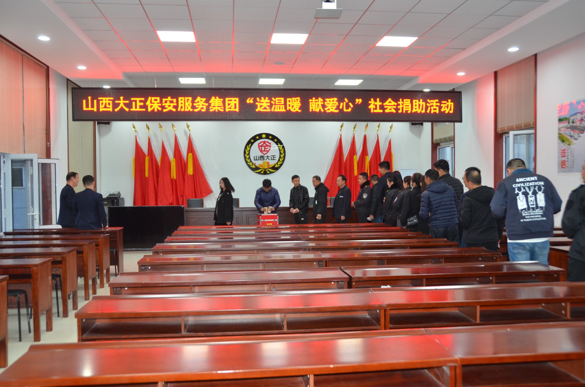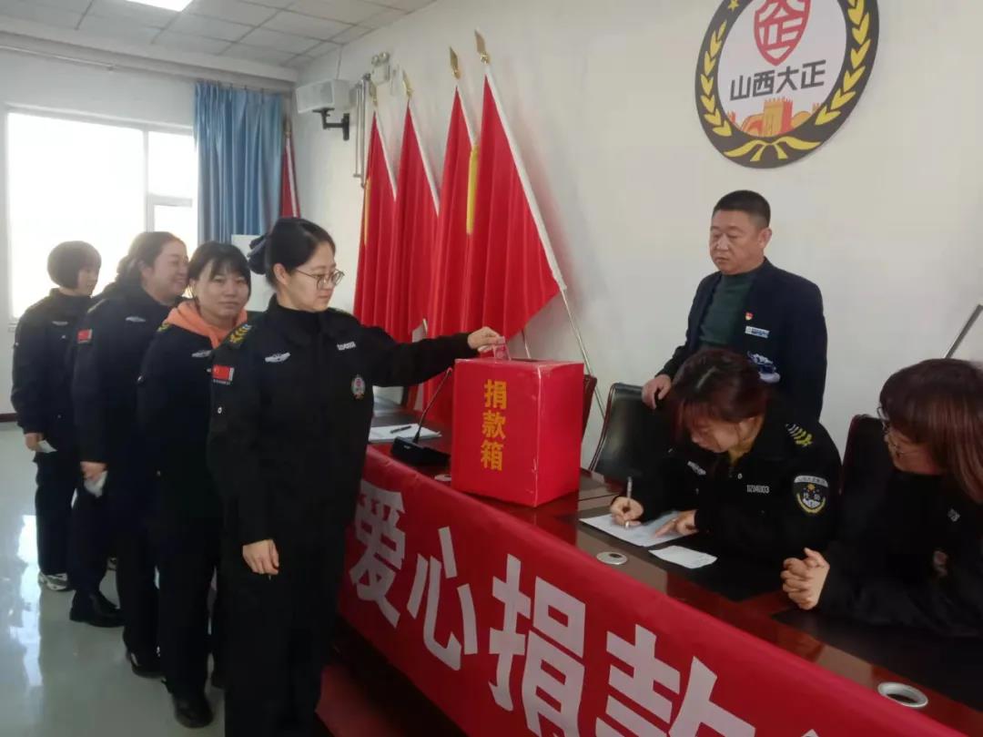 11月15日,集團(tuán)公司組織領(lǐng)導(dǎo)班子成員及總部駐地全體員工在大會議室參加了社會捐助活動。本次捐助活動,彰顯了山西大正保安集團(tuán)廣大員工的奉獻(xiàn)擔(dān)當(dāng)精神,也激發(fā)了公司全體員工扶危濟(jì)貧的愛心,在全公司上下營造了無私奉獻(xiàn)、助人為樂的濃厚氛圍。