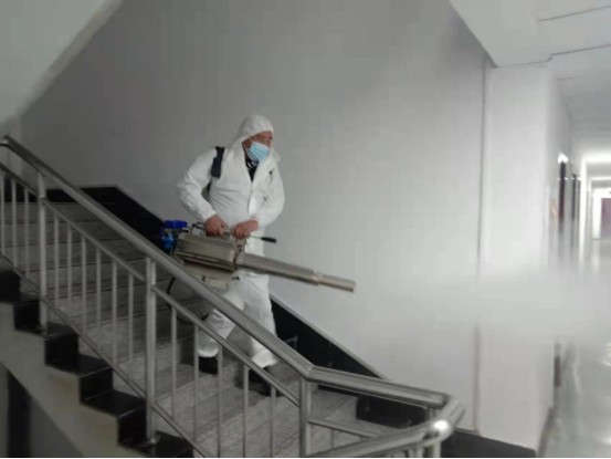 會(huì)后億通公司立即與藍(lán)天救援隊(duì)聯(lián)系,采用彌霧器等專用消毒設(shè)備,利用下班時(shí)間人員不在辦公場(chǎng)所時(shí)間,為兄弟單位、食堂進(jìn)行了全覆蓋、無(wú)死角、高強(qiáng)度的全面消毒。