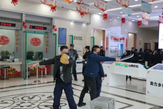根據(jù)市公安局、銀保監(jiān)局、省市聯(lián)社關(guān)于2023年銀行業(yè)突發(fā)事件應(yīng)急預(yù)案演練文件精神,忻州市農(nóng)商銀行于4月1日按照演練方案,對防爆、防搶、防劫持人質(zhì)等15項(xiàng)突發(fā)事件應(yīng)急處置進(jìn)行演練,忻州市公安局內(nèi)保、巡特警支隊(duì)、直屬分局治安大隊(duì)、七一北路派出所及15余名公安干警和大正保安集團(tuán)20余名守押、安保隊(duì)員參加。