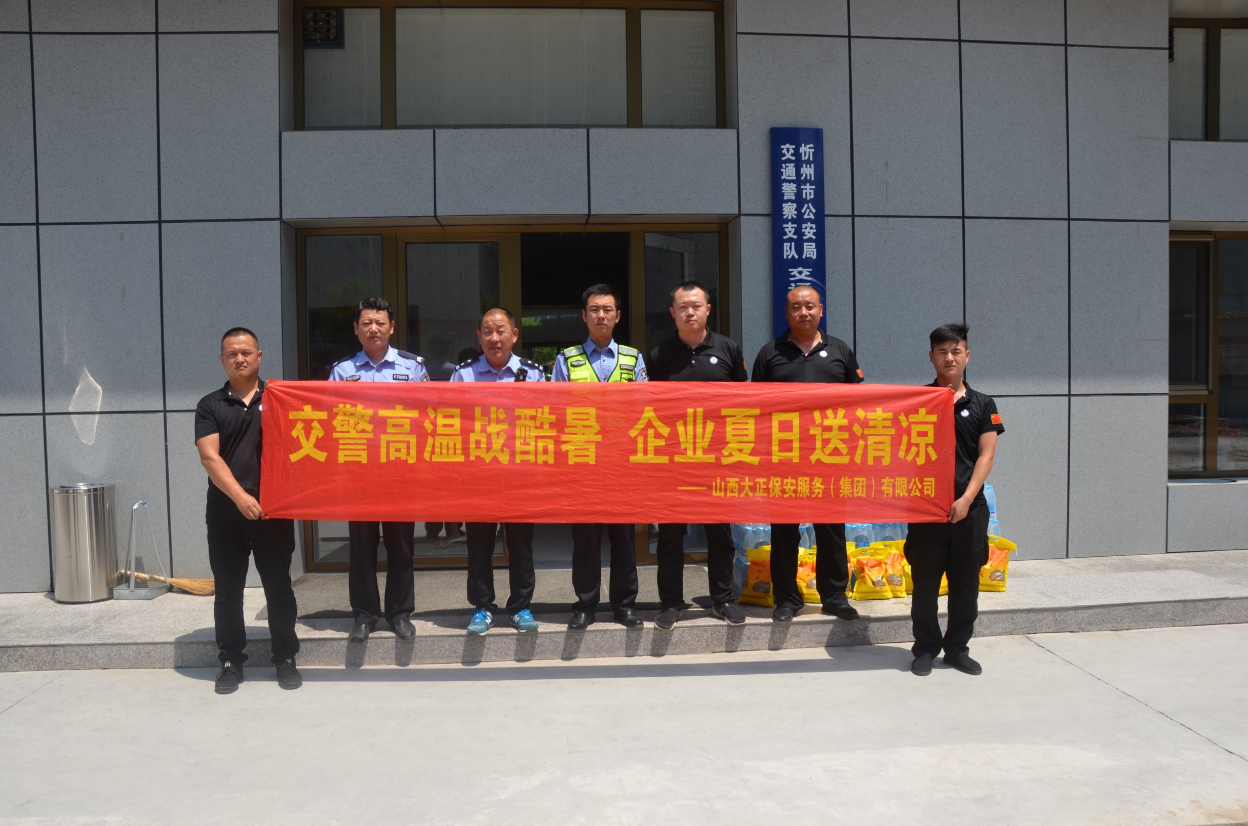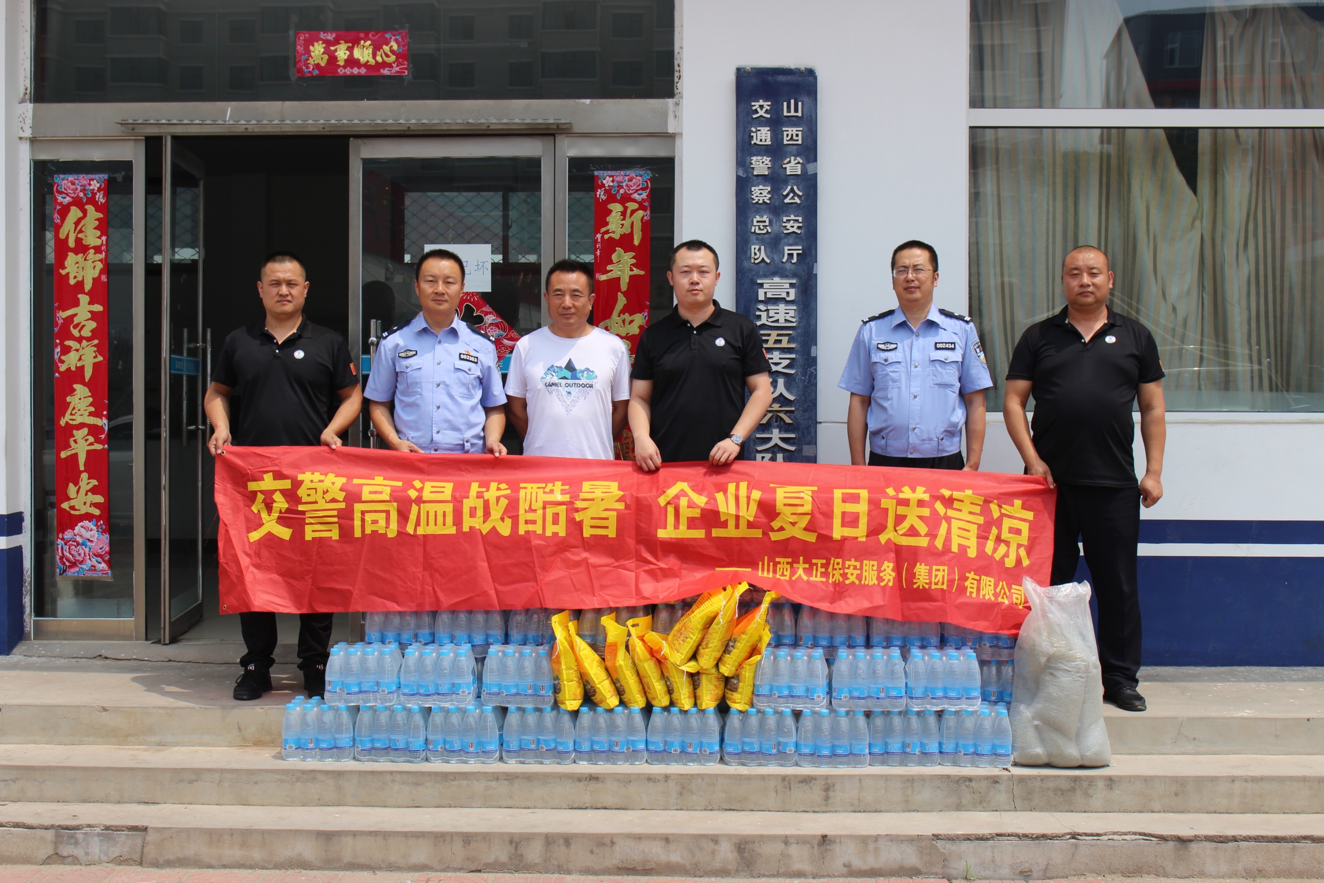 近日,根據(jù)公司統(tǒng)一安排,裝備保障服務(wù)中心牽頭,組織守押公司各基層中隊(duì),前往忻州市區(qū)及各縣市一線交警單位,為烈日下執(zhí)勤的交警一線民警送去降溫解暑的礦泉水、綠豆、小米等慰問物資。