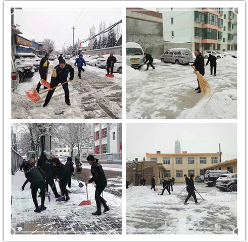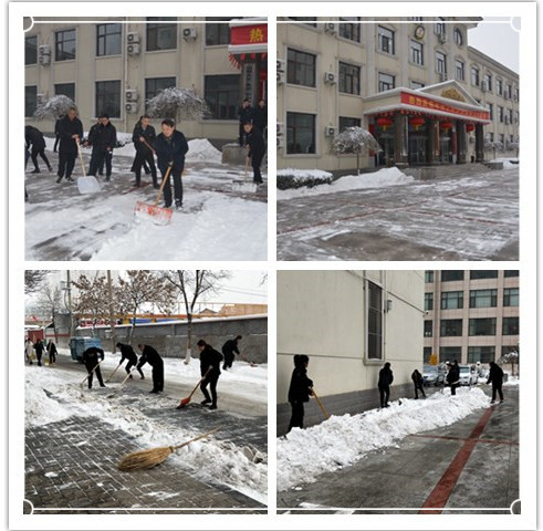 組織機關(guān)干部職工清掃辦公區(qū)域和周邊道路積雪,活動中,凜冽的寒風阻擋不住大家高漲的熱情,齊心協(xié)力,配合默契將積雪清理干凈,使院內(nèi)及周邊道路恢復了暢通。