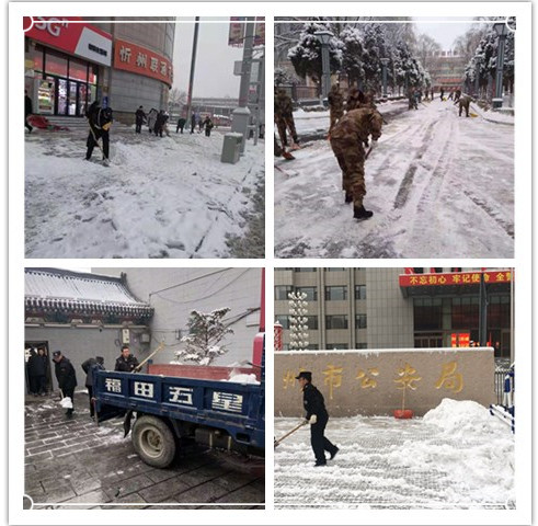 1月5日,2020年紛紛揚揚的一場大雪飄然而至,秀容大地銀裝素裹之間也讓道路覆蓋上了一層厚厚的積雪,不僅給市民出行帶來嚴重不便,也為公司開展工作帶來諸多安全隱患。為此,公司主要領(lǐng)導親自安排,忻州城區(qū)及各縣分支機構(gòu)迅速行動起來清除積雪,及時清掃各自駐地和周邊道路的積雪,用實際行動為我市創(chuàng)文工作做出貢獻。