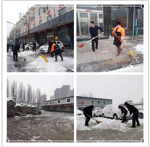 物業(yè)、刻章、文化藝術(shù)等分公司及監(jiān)控中心在組織員工清掃辦公區(qū)域和周邊道路積雪中,專門將清掃范圍擴大,有力保障了道路暢通,為附近居民、七一路小學及十一中學生出行提供安全。