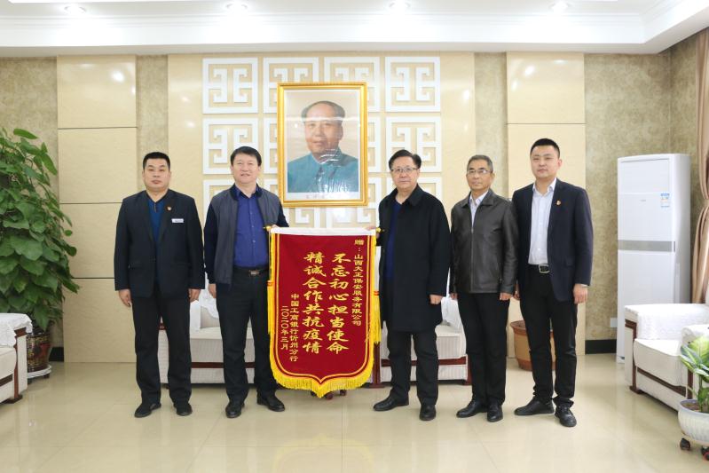 趙培宏代表公司感謝工行忻州分行對我方守押工作的肯定,表示為客戶單位提供優(yōu)質(zhì)服務是公司職責所在,工行忻州分行贈送錦旗,極大地鼓舞了公司干部員工的工作熱情。今后,公司將進一步提升服務意識和服務質(zhì)量,用實際行動來踐行責任與擔當,以更優(yōu)質(zhì)的服務、更專業(yè)的水平滿足客戶需求,一同抗擊疫情,更好的為忻州經(jīng)濟社會建設服務。