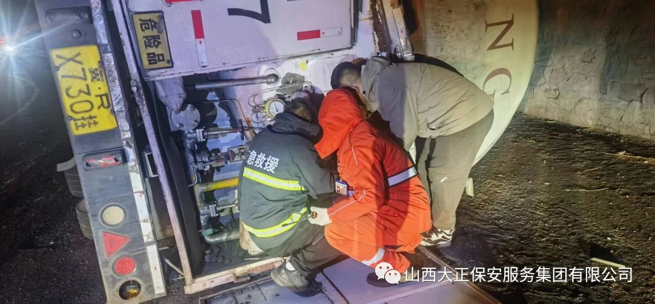 2023年11月23日晚8時,山西大正保安集團(tuán)公司保德縣守押中隊?wèi)?yīng)急救援大隊接到應(yīng)急局出勤指令,棗林坡有滿載液化氣罐車發(fā)生側(cè)翻,需要派出應(yīng)急人員控制現(xiàn)場,并協(xié)助處理側(cè)翻事故。應(yīng)急救援大隊接到命令后,派出應(yīng)急車輛兩部及應(yīng)急人員5人趕赴現(xiàn)場,協(xié)助交警對現(xiàn)場路段進(jìn)行管控,保證周圍車輛人員安全。
